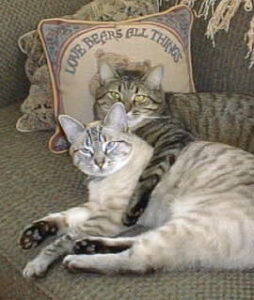 We’ve loved many dogs and cats in our lives, but these two rescue kittens were our pets when we raised our family – they guarded our babies in their cribs, ran from them as toddlers, snuggled them as children and meowed for pets from them as teens. Both cats had wonderful lives into their own late teens. R.I.P. Rex and Sam – we love you!