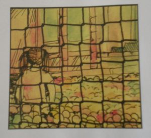 The Pervert is not all flavor. That is to say, it isn’t all violence and curse words. There is a balance to this delivery that, as the preface says, feels “like foie gras on a knife blade.” We can never forget the edge but we still love the flavor. The balance comes, in part, by the watercolored impressionist style of the art and its placement. Color is used to full effect, creating a visual mood in the panels, like the way bile yellow fills the four panels depicting the fast-food restaurant manager soliciting after-hours ball-pit sex while on duty. The putrid nature of the color, along with the context, creates a physical sensation of revulsion as the reader takes on the point of view of the narrator and stares for a panel at the pig-tailed girl playing in the pit.