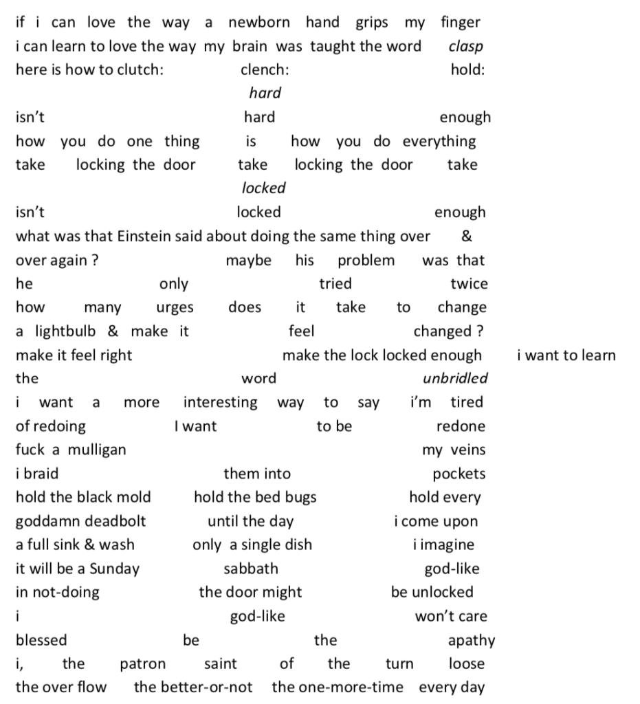 Shay Alexi reads “OBSESSIVE / COMPULSIVE”: