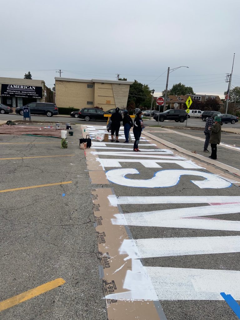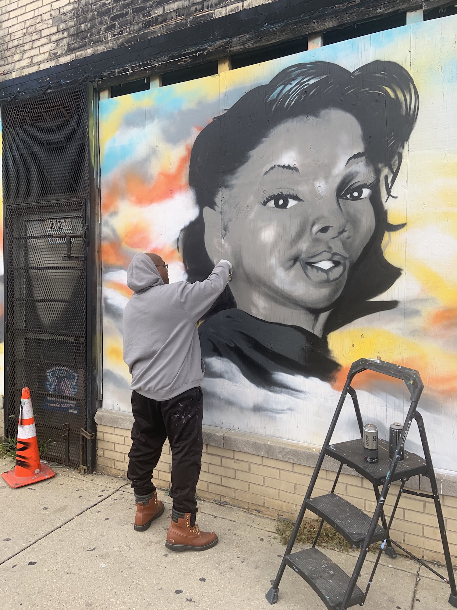 The medium I prefer is spray paint—it’s faster than painting with a brush, it dries faster, and it’s bolder. I will do commissioned paintings, though I prefer to do public art because it has the ability to raise awareness of racism, and inspire people and positive change on the South Side of Chicago. I want to encourage the beauty of art like there is on the North Side of Chicago.