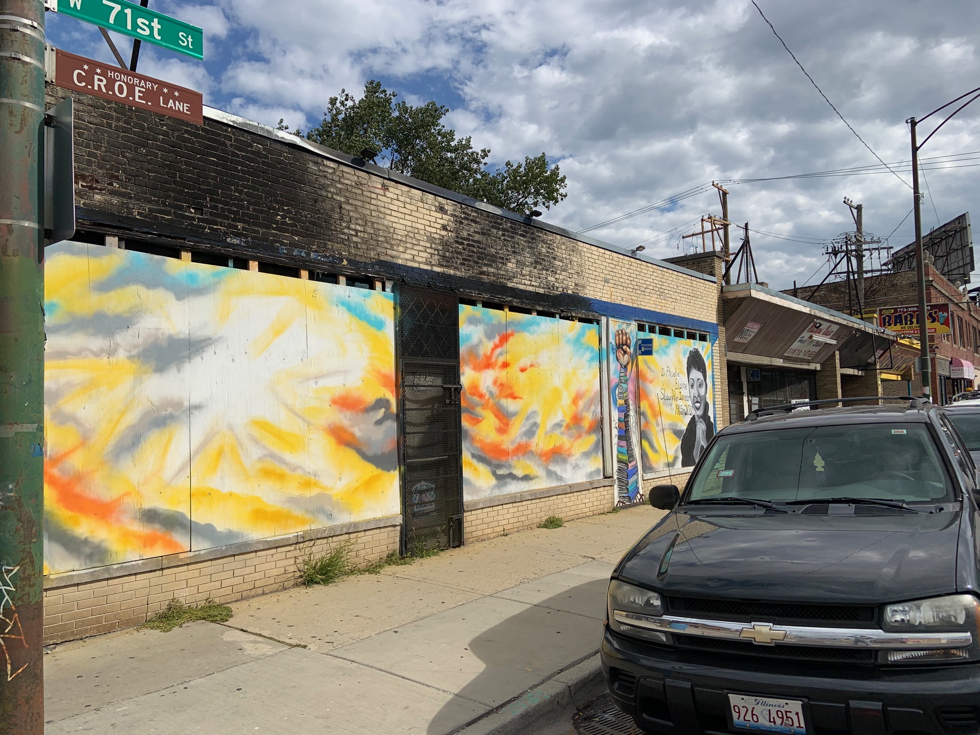 In 2014, I asked the owners of the Quick Stop convenient store at the corner of 71st and Western Avenue in Englewood if I could remove a wall of graffiti, and paint positive pictures to show the community we could be great. Owners, Mike and Charlie, both from Arab countries, had been in our community for 30 years, and understood the need to improve the image of the community and inspire through art.