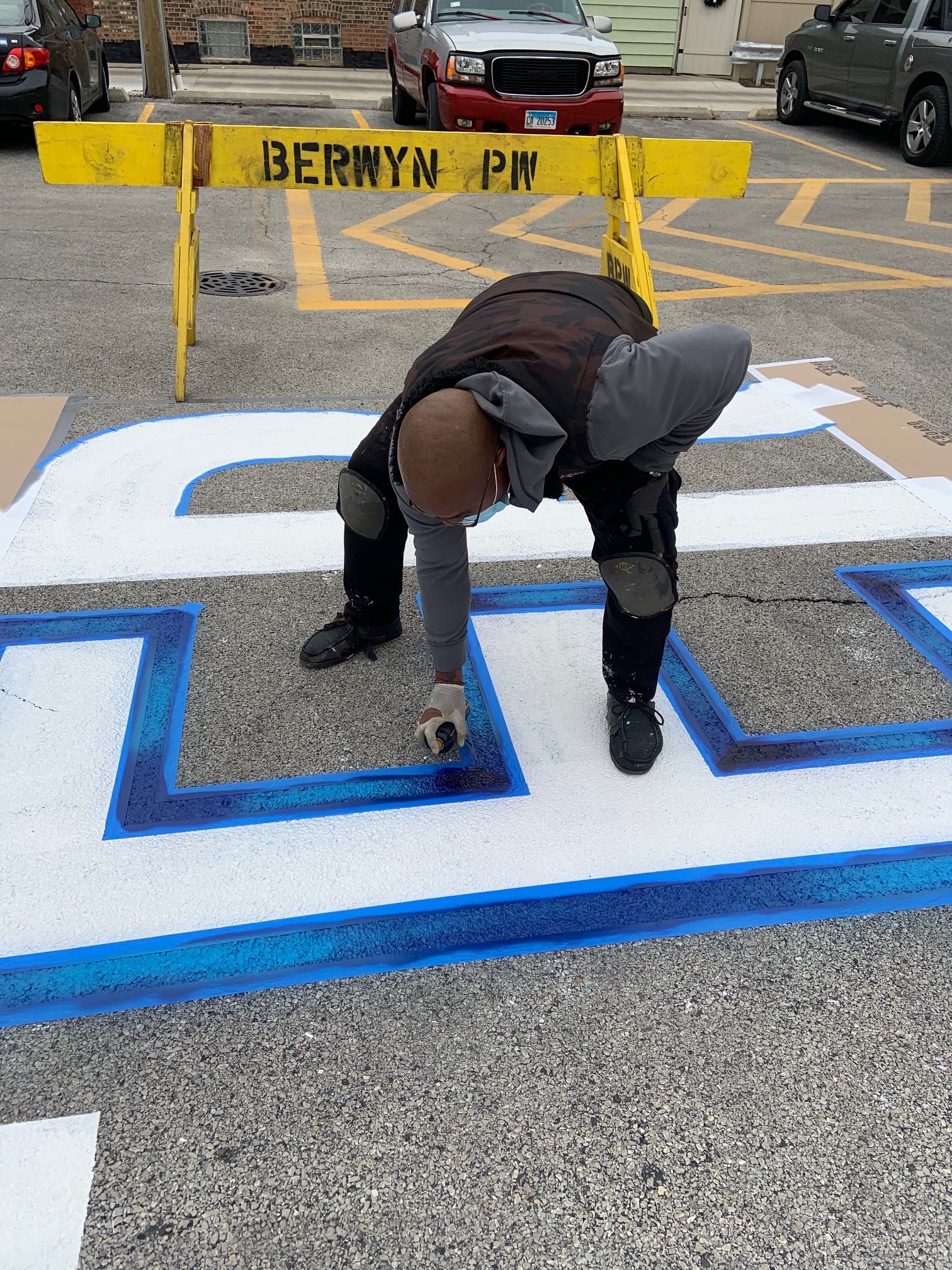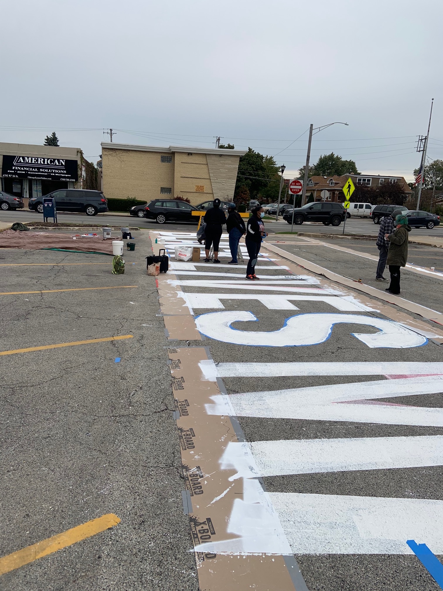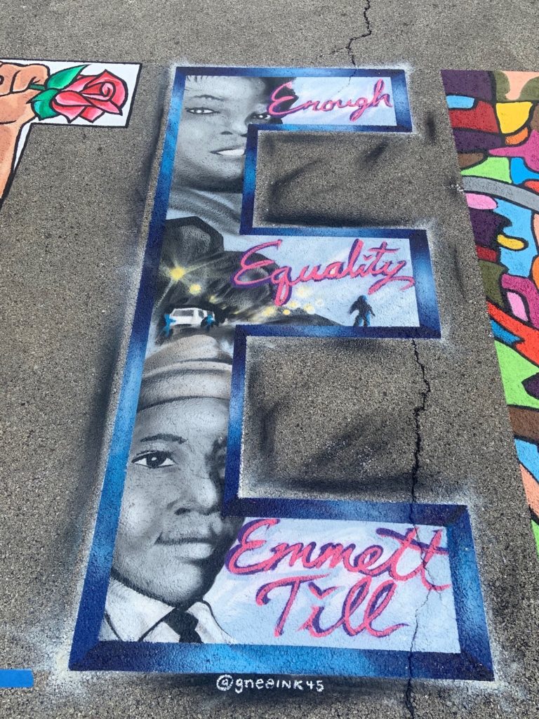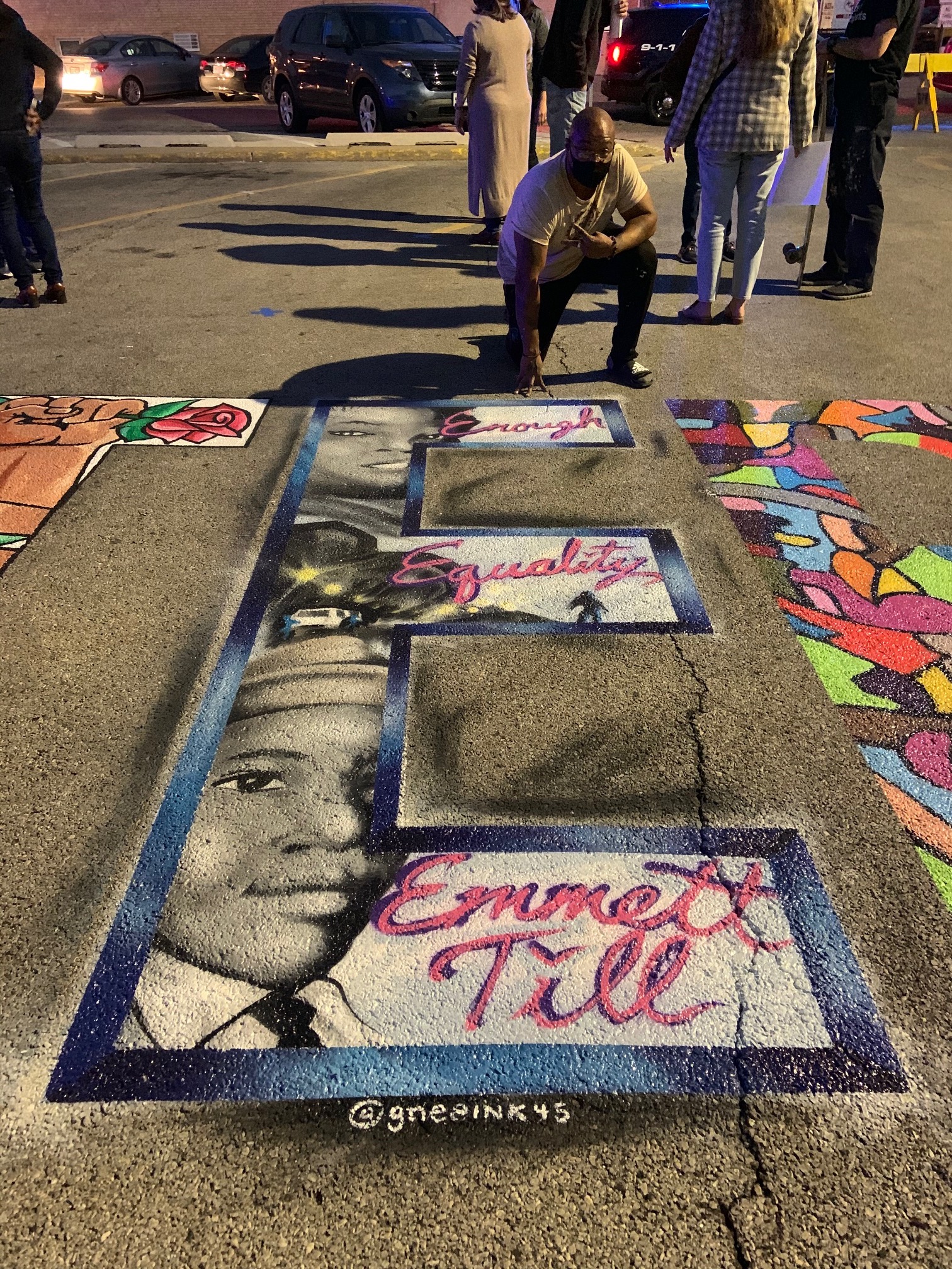 For the Black Lives Matter mural located in Berwyn, IL, I was commissioned by the Mayor’s Office in September, 2020, along with eleven other Black and LatinX artists, to create a piece raising awareness of the social unrest across the city. My contribution was the “E” in Matter, and I chose to include Breonna Tayler, Laquan McDonald, and Emmett Till because their faces should be shown as black lives that mattered, and that still matter today.