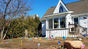 Since the early days of COVID, my front-yard garden of brightly colored paper hearts has become well-known in our community. I’ve posted cutout neon hearts that read things like “Look at you with your COVID hair, you’re gorgeous!” or “Hug your bubble,” or my family’s favorite, “Don’t stand so close that we can smell your farts!” Because I’m often outside tending the flowers and grasses, people walking by will stop and tell me how much they enjoy the garden and the paper hearts. Or they’ll read the hearts out loud and laugh, and sometimes they take pictures with their phones.